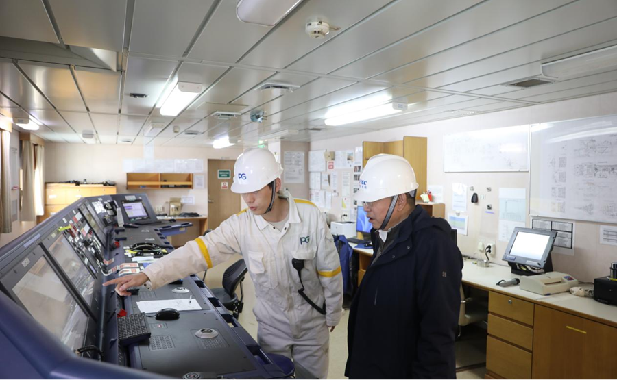 本次調(diào)研學(xué)習(xí)圍繞“深入學(xué)習(xí)領(lǐng)會(huì)習(xí)近平總書記關(guān)于推動(dòng)高質(zhì)量發(fā)展的重要論述,認(rèn)真落實(shí)中央經(jīng)濟(jì)工作會(huì)議精神,切實(shí)將學(xué)習(xí)成果轉(zhuǎn)化為推動(dòng)公司高質(zhì)量發(fā)展的實(shí)際成效”主題,與會(huì)人員參觀了北海造船公司展廳,到公司LNG運(yùn)輸船“山東瑞博”輪進(jìn)行了實(shí)地調(diào)研。開展了集體學(xué)習(xí),學(xué)習(xí)了《習(xí)近平談治國(guó)理政》(第五卷)第四部分《因地制宜發(fā)展新質(zhì)生產(chǎn)力,實(shí)現(xiàn)高質(zhì)量發(fā)展》相關(guān)篇目和習(xí)近平總書記關(guān)于發(fā)展海洋經(jīng)濟(jì)、建設(shè)海洋強(qiáng)國(guó)的重要論述,黨委理論學(xué)習(xí)中心組同志圍繞本次學(xué)習(xí)主題及工作實(shí)際進(jìn)行了交流發(fā)言。