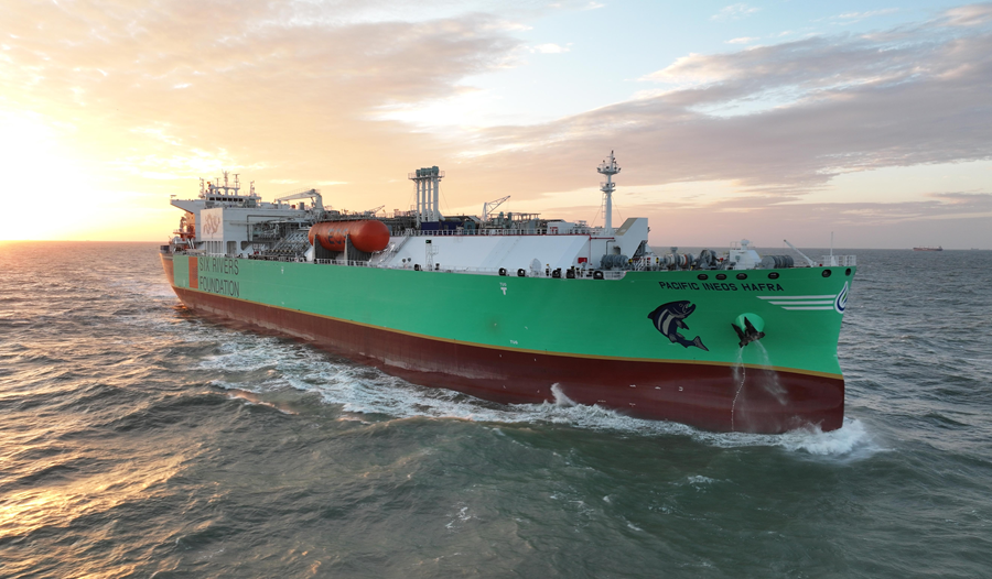 本次命名的兩艘船舶,是山東海洋能源旗下第七、第八艘乙烷運輸船,雙船均采用江南造船(集團)有限責任公司“Panda”系列設計,搭載乙烷雙燃料主機及B型艙圍護系統(tǒng)(BrilliancE),實現硫氧化物“零排放”和氮氧化物大幅減排,既契合全球環(huán)保新規(guī)要求,又具備卓越的運營經濟性。